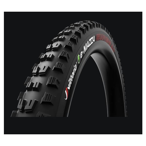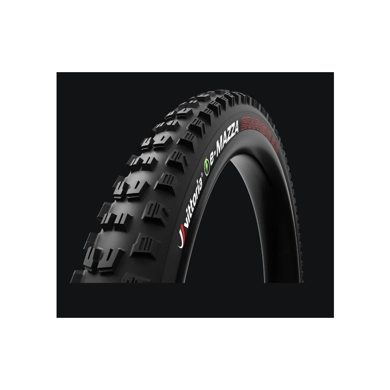 La versione e-bike del nuovo Vittoria Mazza alza l'asticella delle prestazioni di pneumatici e-Enduro per terreni misti! Mazza presenta una tassellatura ben definita centralmente e gli intagli profondi presenti sui tasselli nel verso di rotazione consentono allo pneumatico di rotolare velocemente nei cambi di direzione. Lo scalino alla base dei tasselli lavora come una rampa, ma affonda nel terreno in fase di salita, consentendo a e-Mazza di essere un'ottima opzione sia all'anteriore che al posteriore. Gli ampi spazi vuoti nella parte centrale del battistrada forniscono trazione in frenata e favoriscono l'auto-pulitura da fango e detriti. In fase di curva, gli intagli progressivi dei tasselli (tecnologia proprietaria di Vittoria) garantiscono grip e tenuta. I tasslli di e-Mazza sono sufficientemente alti per affondare in diversi tipi di terreni. Il battistrada utilizza 4 strati di gomma (tecnologia 4C) potenziati dal grafene conferendo aderenza in superficie e robustezza alla base. Questa composizione di mescole assicura tenuta nelle curve più estreme, velocità costante anche in curva e durata del battistrada.